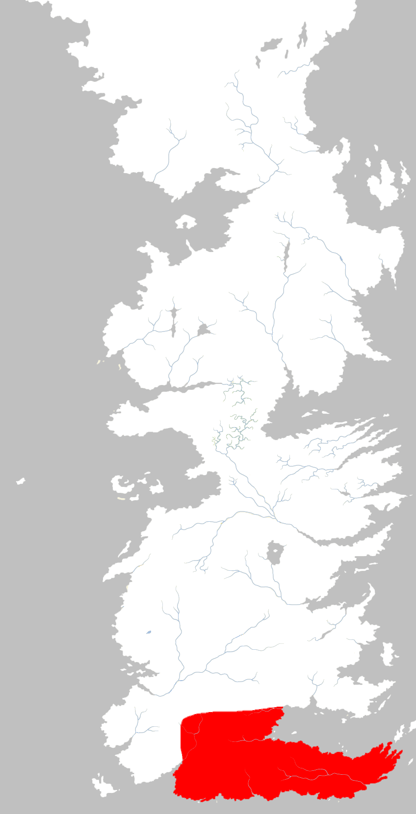 - El Principado de Dorne, gobernado desde Lanza del Sol por los antiguos Príncipes de Dorne de la Casa Nymeros Martell.