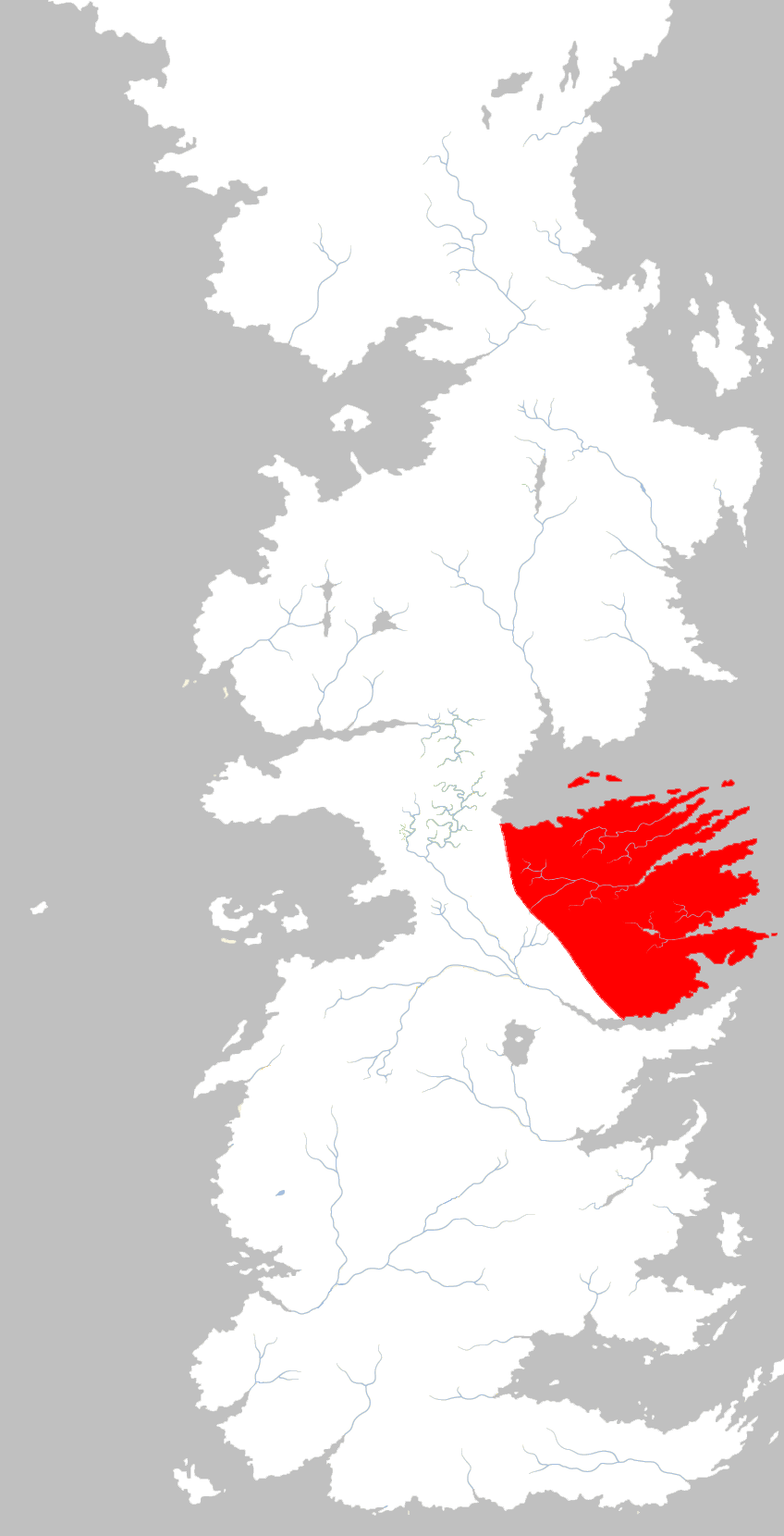 - El Reino de las Islas y los Ríos, gobernado por un Rey de las Islas y los Ríos de la Casa Hoare desde su nuevo asentamiento, Harrenhal.[1]